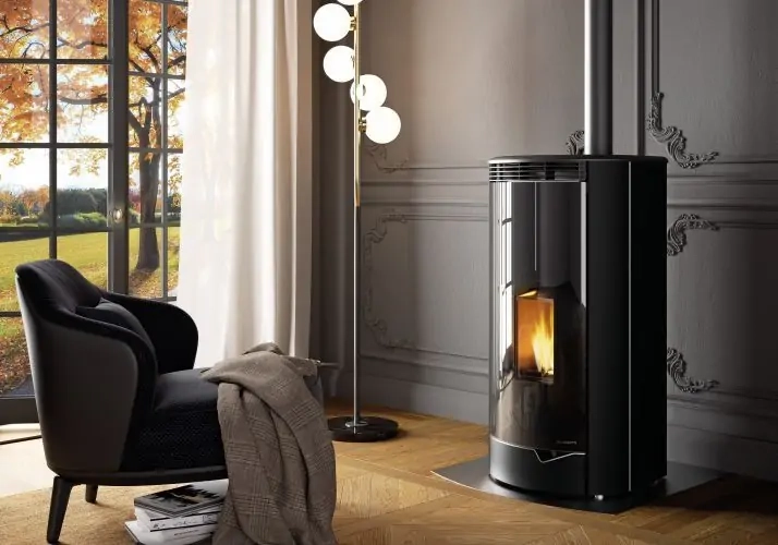 Poêle à granulés Ecofire Marianne 6 Air au design arrondi élégant, conçu pour offrir un chauffage performant et confortable.